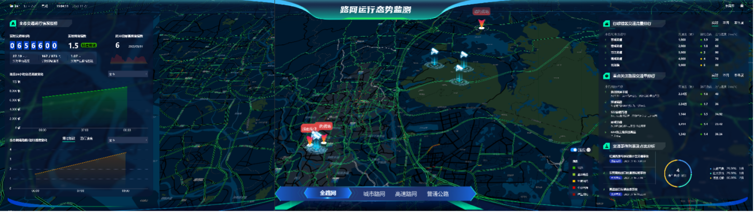 1. Visualized Traffic Operation Status: Enables precise perception of traffic conditions, timely event warnings, and unified visualization of all traffic resources, providing integrated monitoring across all operations. This enhances traffic operation supervision efficiency and overall traffic flow effectiveness.