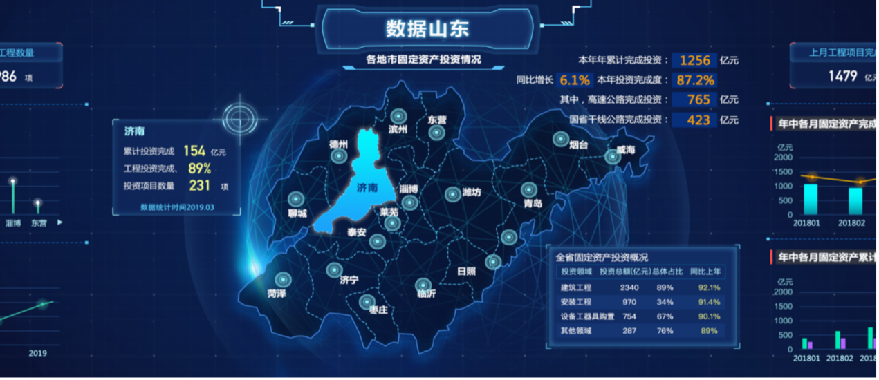 “Data-Driven Shandong” comprehensive visualization: Provides real-time displays of transportation planning, economic performance, infrastructure, and construction investment.