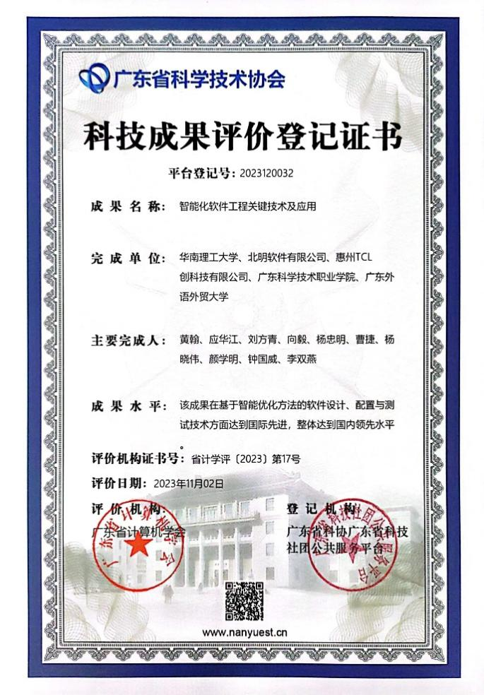 In recent years, China’s software industry has experienced rapid market growth, while also facing challenges such as a weak foundation in key core technologies. Since the onset of China–US trade tensions, China has placed strong emphasis on the development of domestically developed software, particularly in the industrial sector. Promoting the replacement of imported software with domestic alternatives and strengthening the core competitiveness of domestic software have become an overarching trend. The award-winning project, Key Technologies and Applications of Intelligent Software Engineering, was developed under China’s information technology application innovation initiative. It addresses challenges in existing intelligent software engineering technologies, including high costs, low efficiency, and high complexity, through three major technical objectives. First, it introduces a neural network architecture search method based on multi-objective and multi-constraint optimization, reducing the high costs of extensive pre-training required for software requirement text classification and overcoming the limitations of existing neural network search methods in meeting multiple objectives and constraints in software requirement scenarios. Second, it proposes an automatic software configuration approach based on heuristic complex optimization, resolving the issue of low configuration combination coverage found in similar methods. Third, it presents an automatic software testing method based on heuristic black-box optimization, effectively addressing challenges such as low program path coverage and the difficulty of testing software without source code. The technological breakthroughs achieved by the project have received unanimous recognition from the Science and Technology Achievement Evaluation Committee of the Guangdong Computer Academy. The committee concluded that, across key performance indicators such as requirement text classification accuracy, 2-wise combination coverage of configuration options, and program path coverage, the project demonstrates clear advantages over comparable domestic and international methods. Its technologies for software design, configuration, and testing based on intelligent optimization have reached an internationally advanced level and a leading position within China.